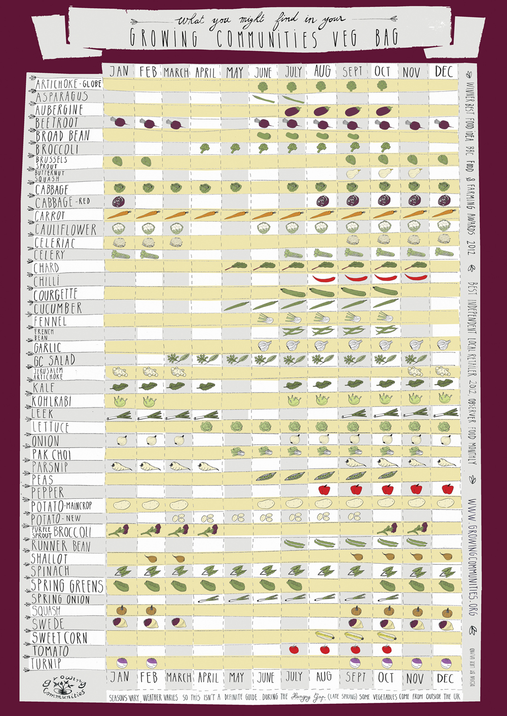 See Lucie Galand’s Seasonal Veg chart for a useful guide to what’s in season.