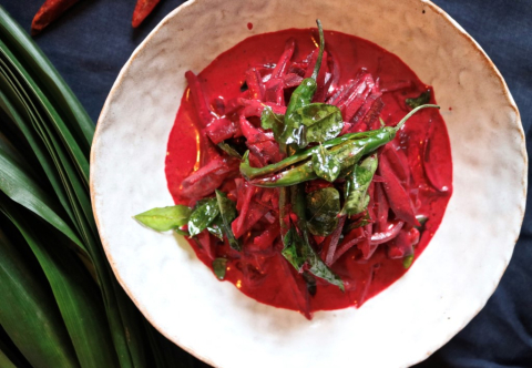 This is a gorgeous and exciting way to use up beetroots with Sri Lankan flavours. Perfect warming stuff for a cold windy day.