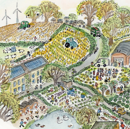 Farming continues to be about producing food for a living, but this increasingly includes different approaches such as part-time ‘patchwork’ urban farming, and city people involved in running orchards and farms which supply food to their communities. All children are taught how to grow food in school.