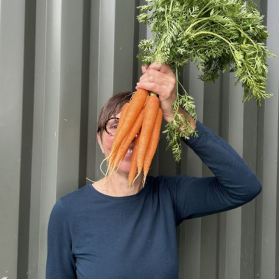 Jo has run the GC veg box scheme since 2017 after retraining in sustainable food systems with an MSc in Food Policy from City University.