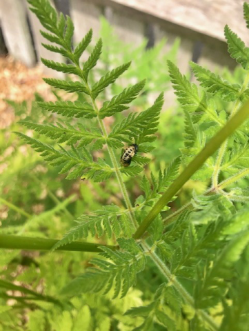 At Clissold the ladybird pupae that were on the sweet Cicely 2 weeks ago have turned into ladybirds! Amazing metamorphosis - in the second photo you can see the empty pupal shell.